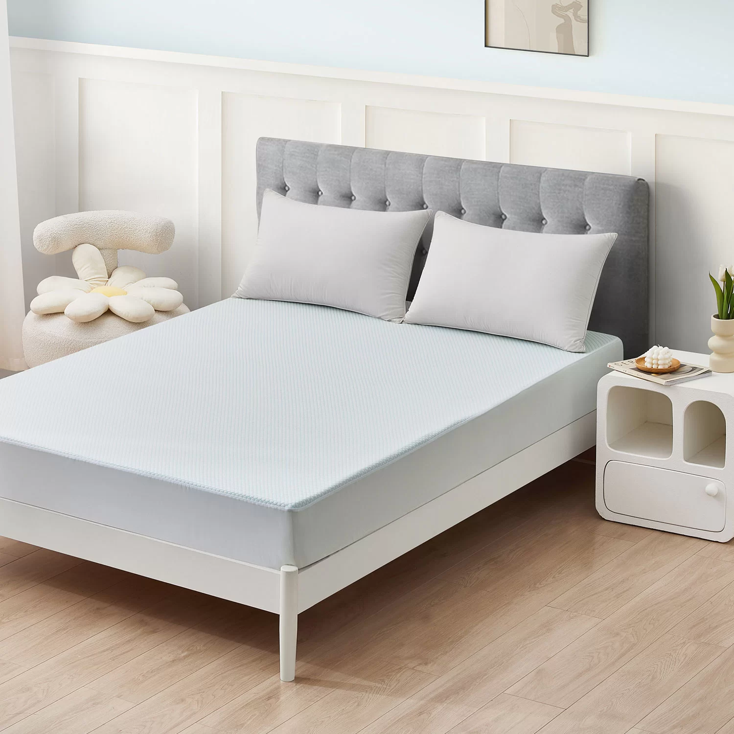 Machine-Washable & Low-Maintenance: Madali lang ang paglilinis! Ihagis lang ang protector sa washing machine (malamig na tubig, banayad na cycle) at patuyuin sa mahinang init. Pinapanatili nito ang mga katangian ng paglamig at pagiging hindi tinatablan ng tubig kahit na matapos ang dose-dosenang paghuhugas—walang pamamalantsa o espesyal na pangangalaga.