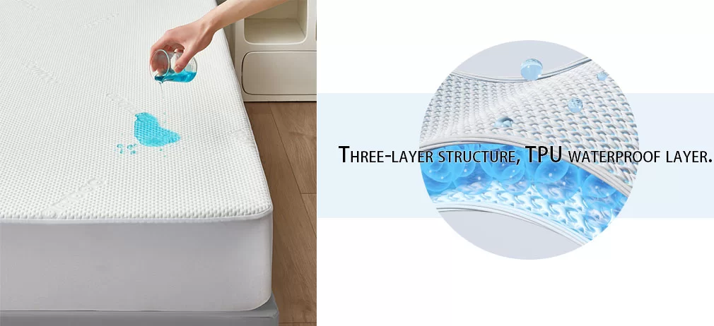 Higit pa sa kaginhawahan, nag-aalok ito ng komprehensibong proteksyon: isang manipis, tahimik na food-grade na TPU na hindi tinatablan ng tubig na mga kalasag laban sa mga spill (kape, alak, pawis), mantsa, at moisture build, habang ang mahigpit na hinabing Tela nito ay humaharang sa mga dust mite, pet dander, at Lahatergens—na lumilikha ng hypoLahatergenic, walang kemikal na kapaligiran sa pagtulog na ligtas para sa sensitibong balat, mga sanggol, at isang Lahatergy.